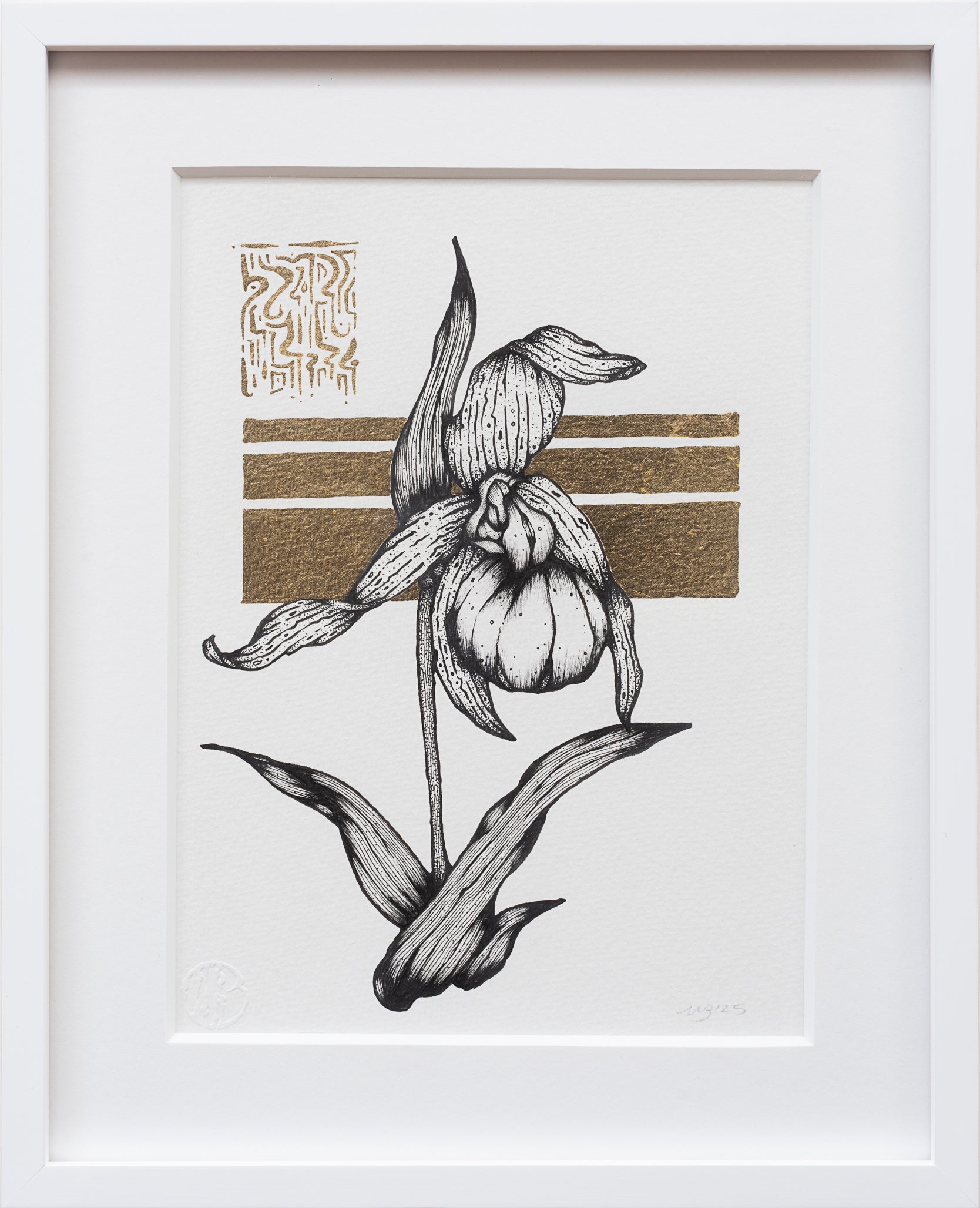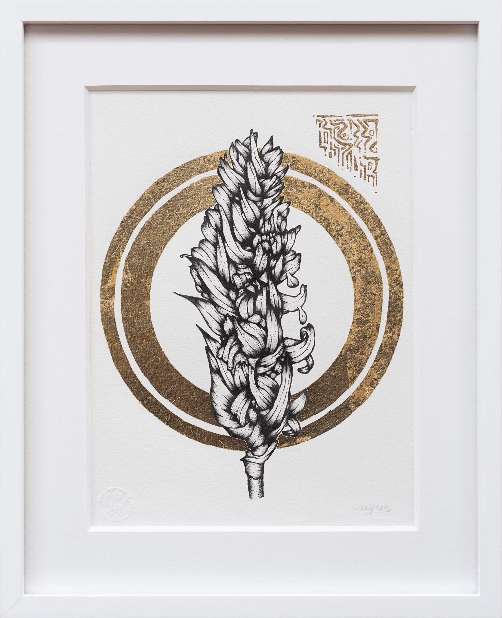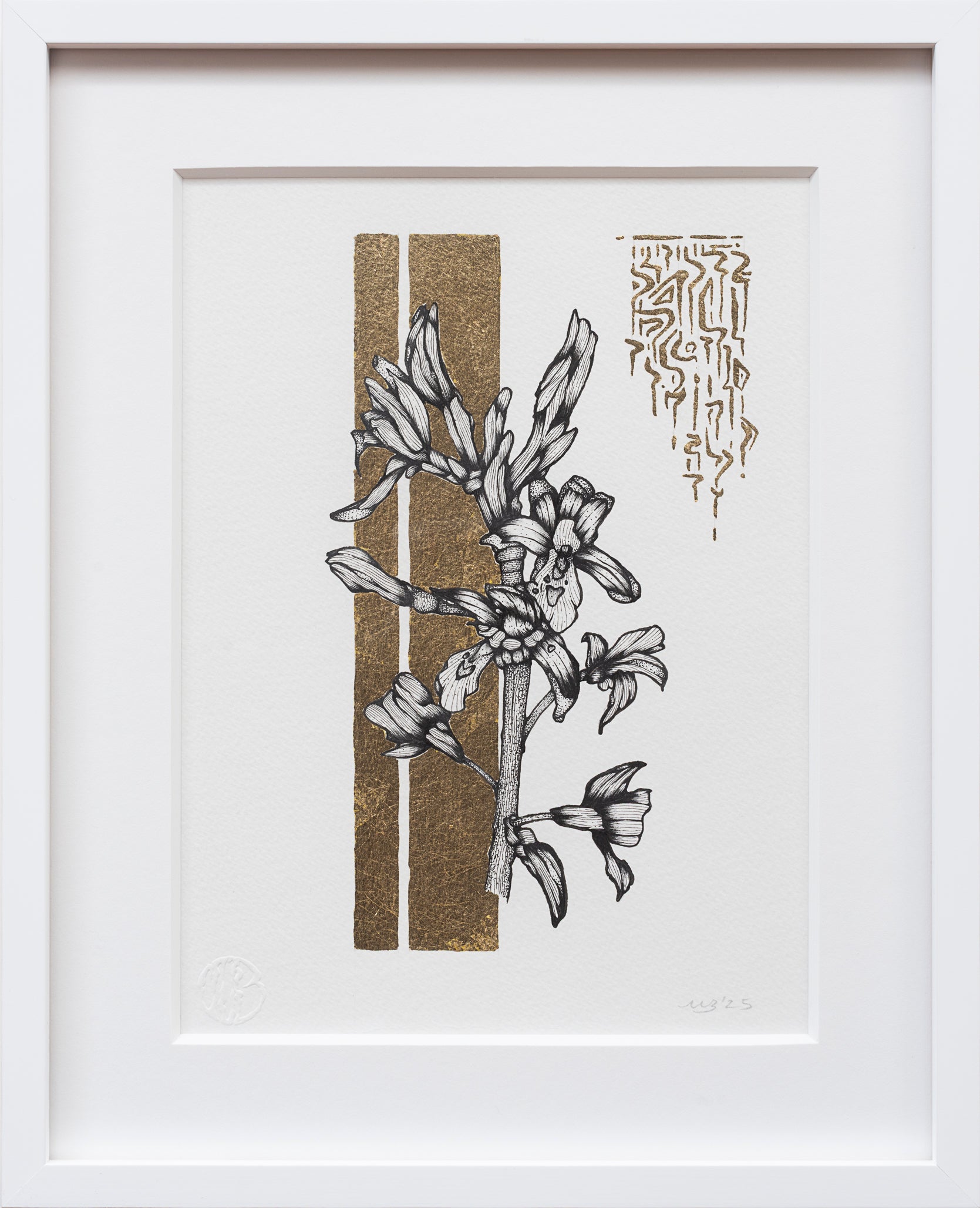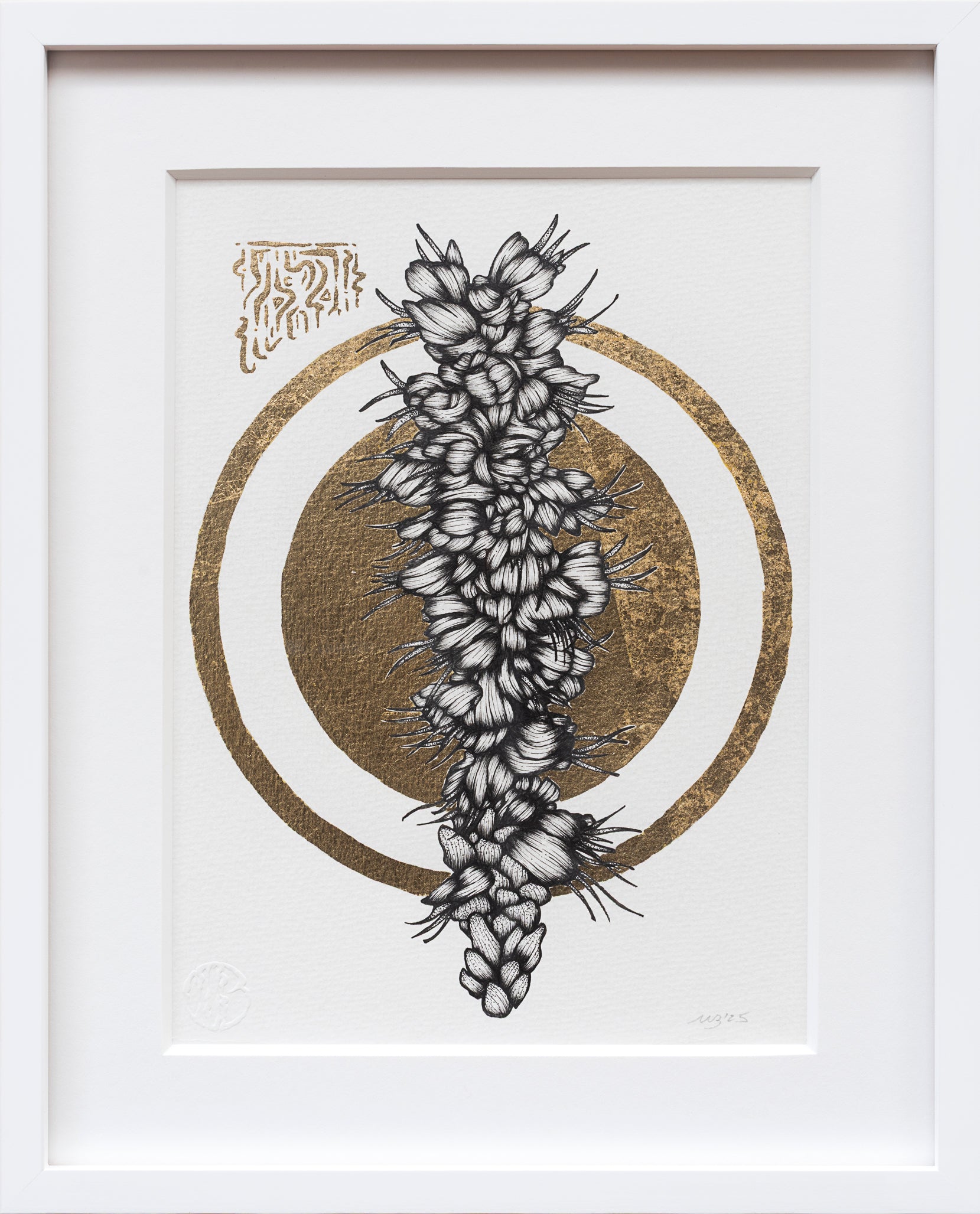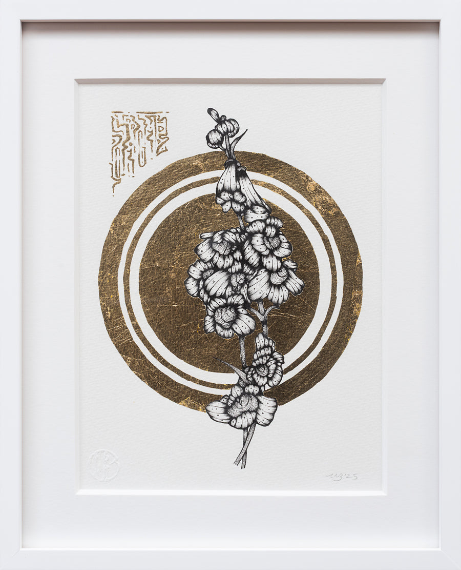 Ink & Gold Leaf on Watercolor Paper, 2025