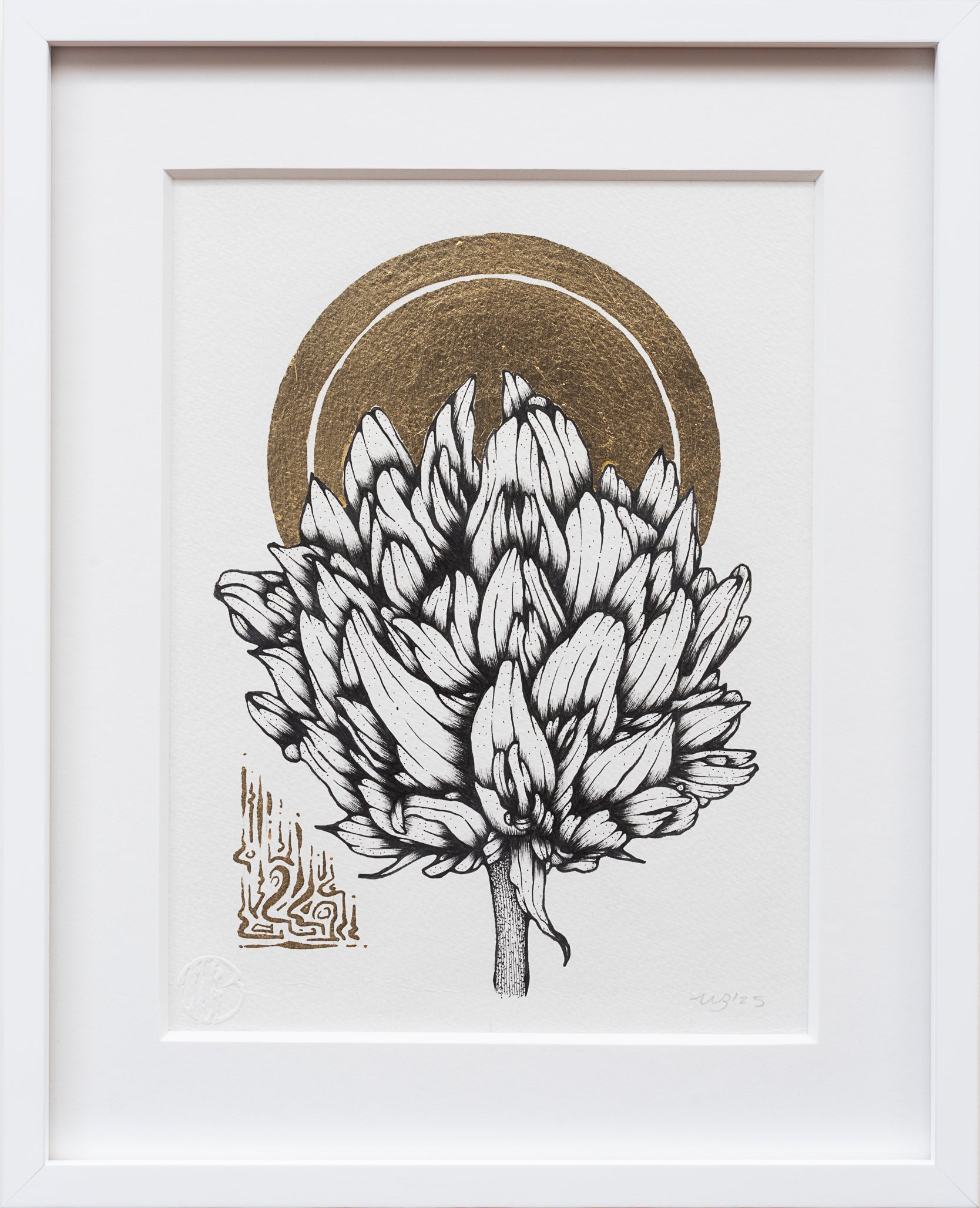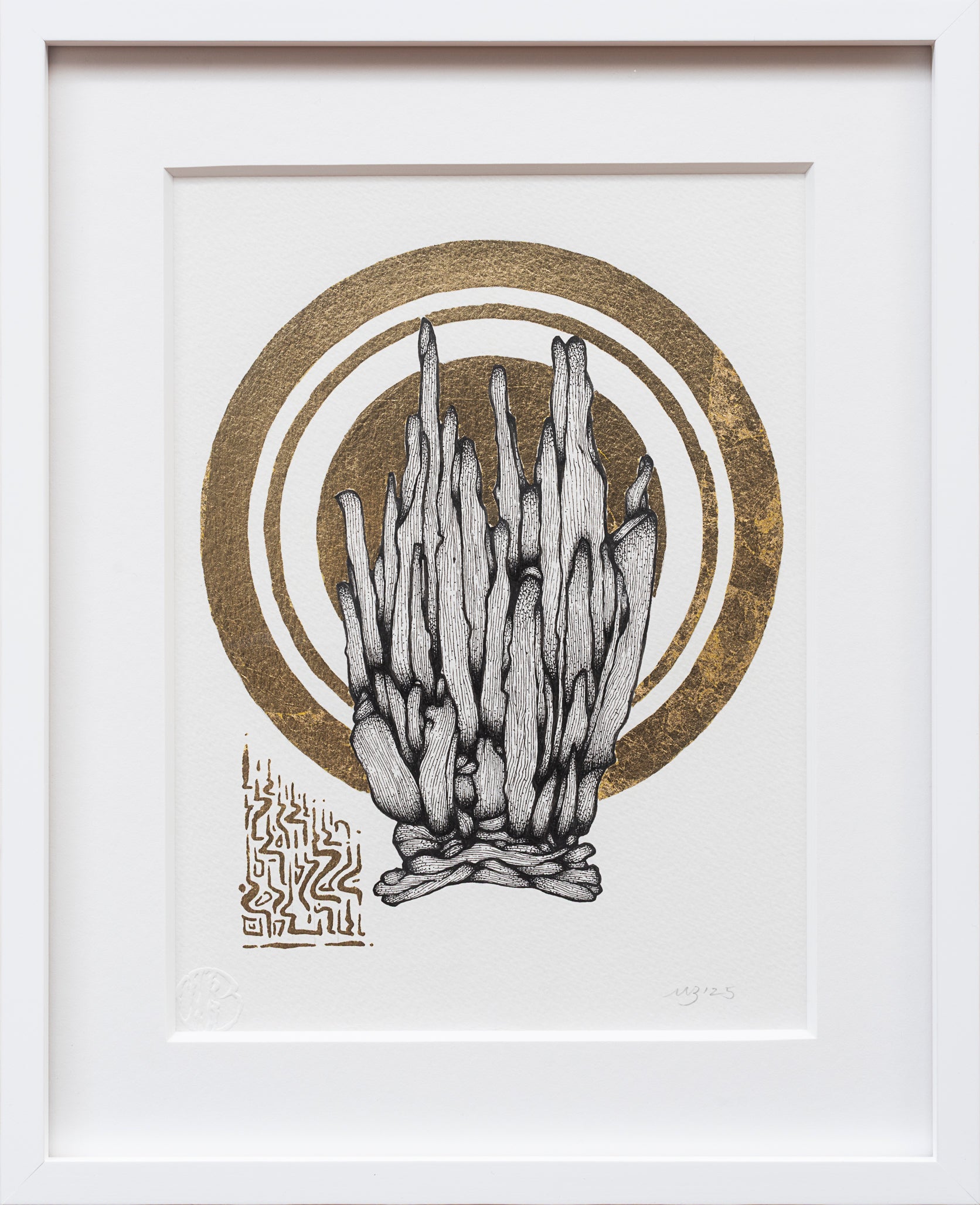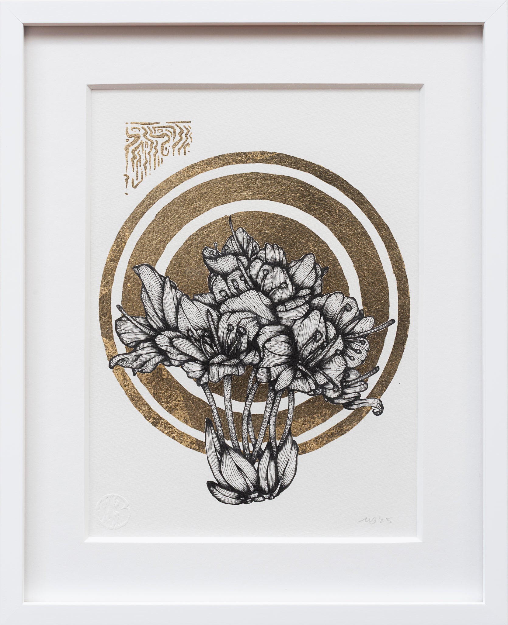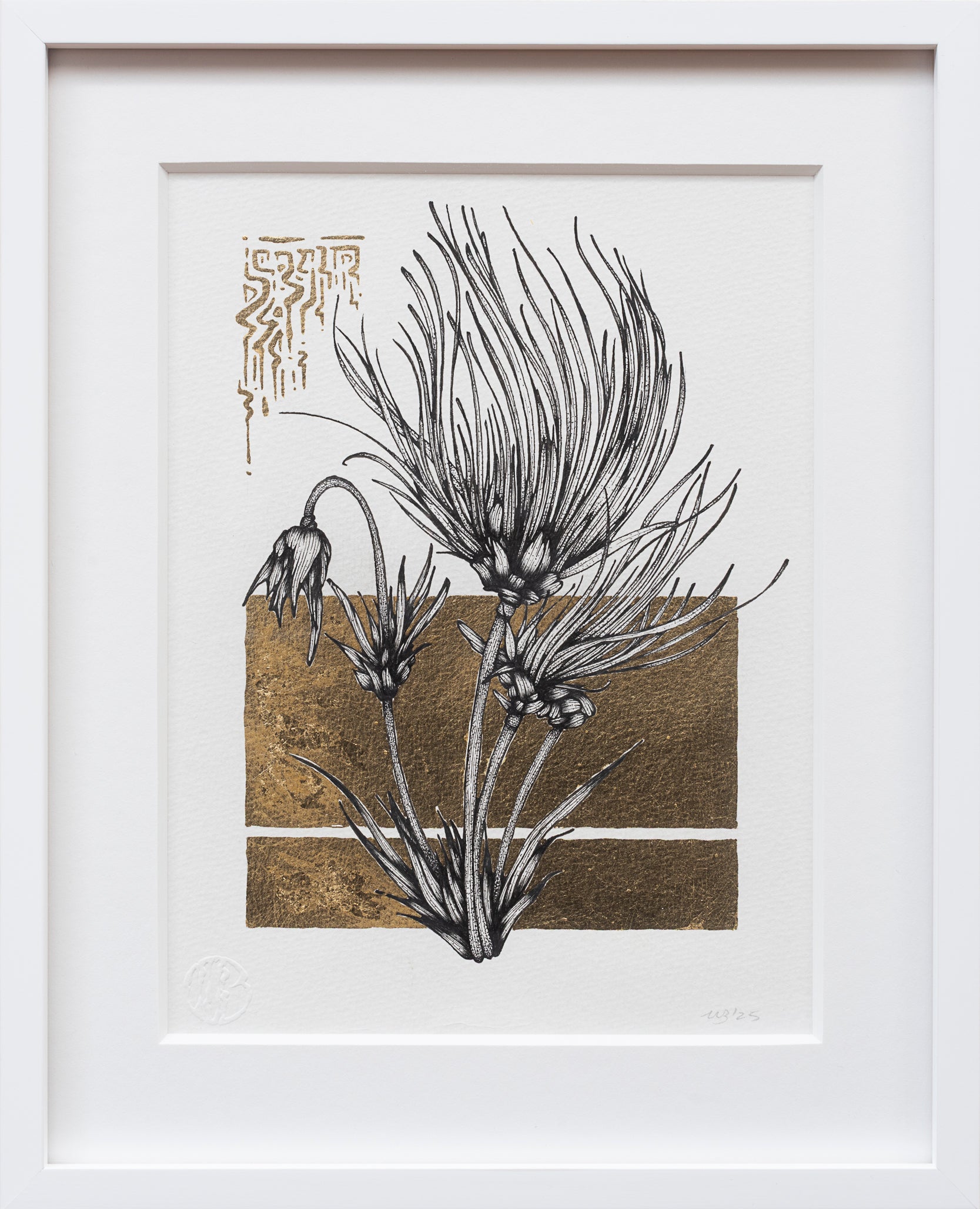 Ink & Gold Leaf on Watercolor Paper, 2025