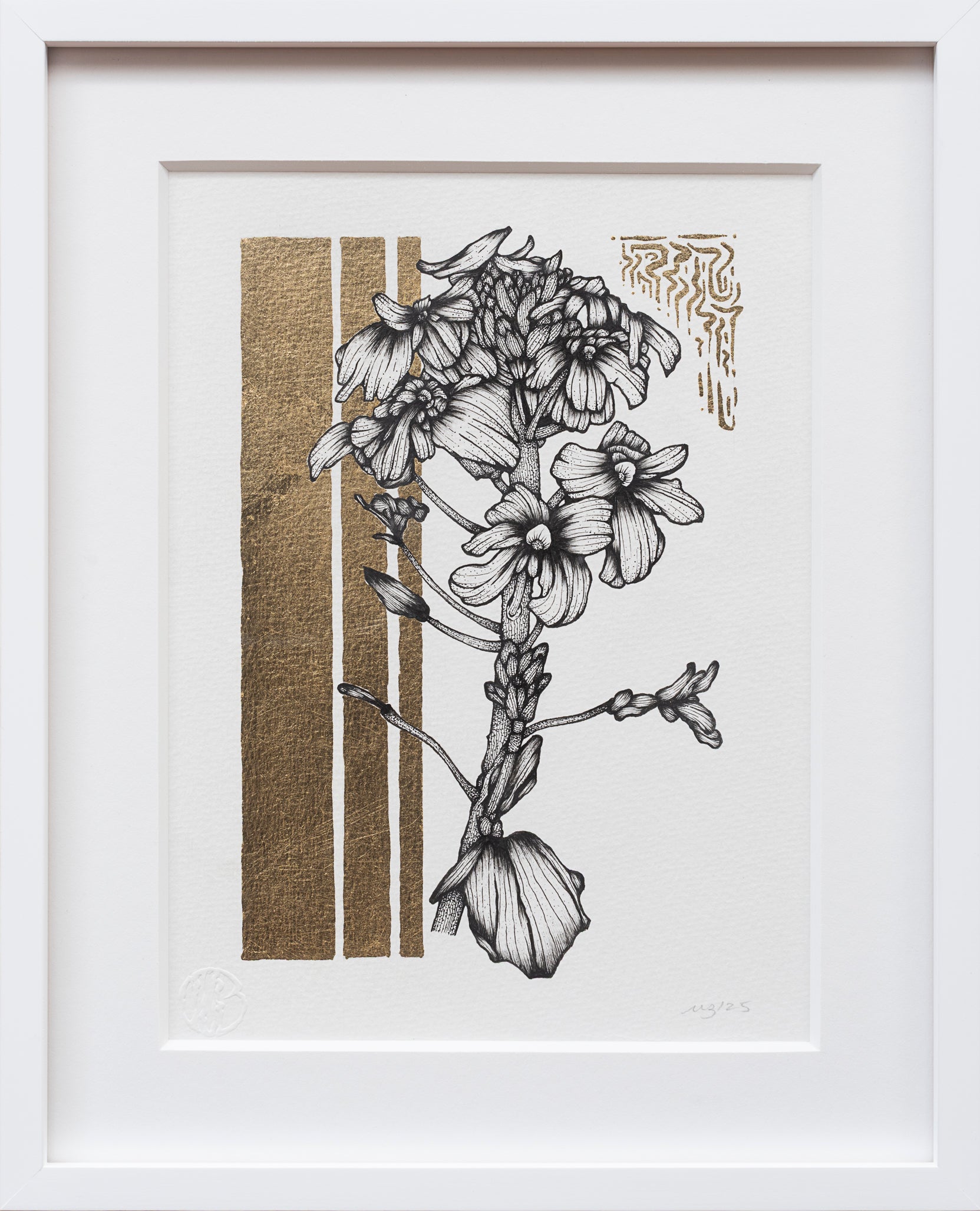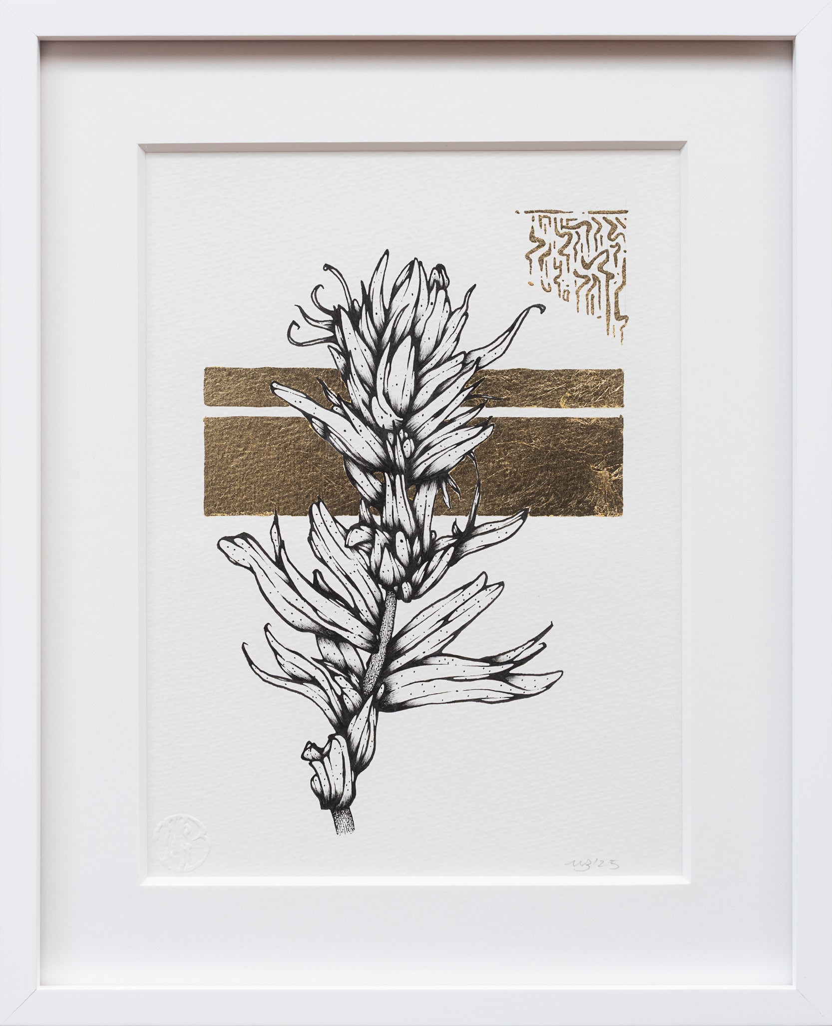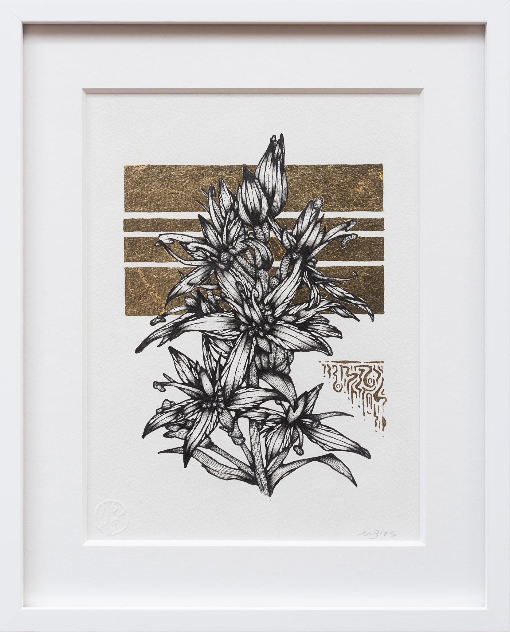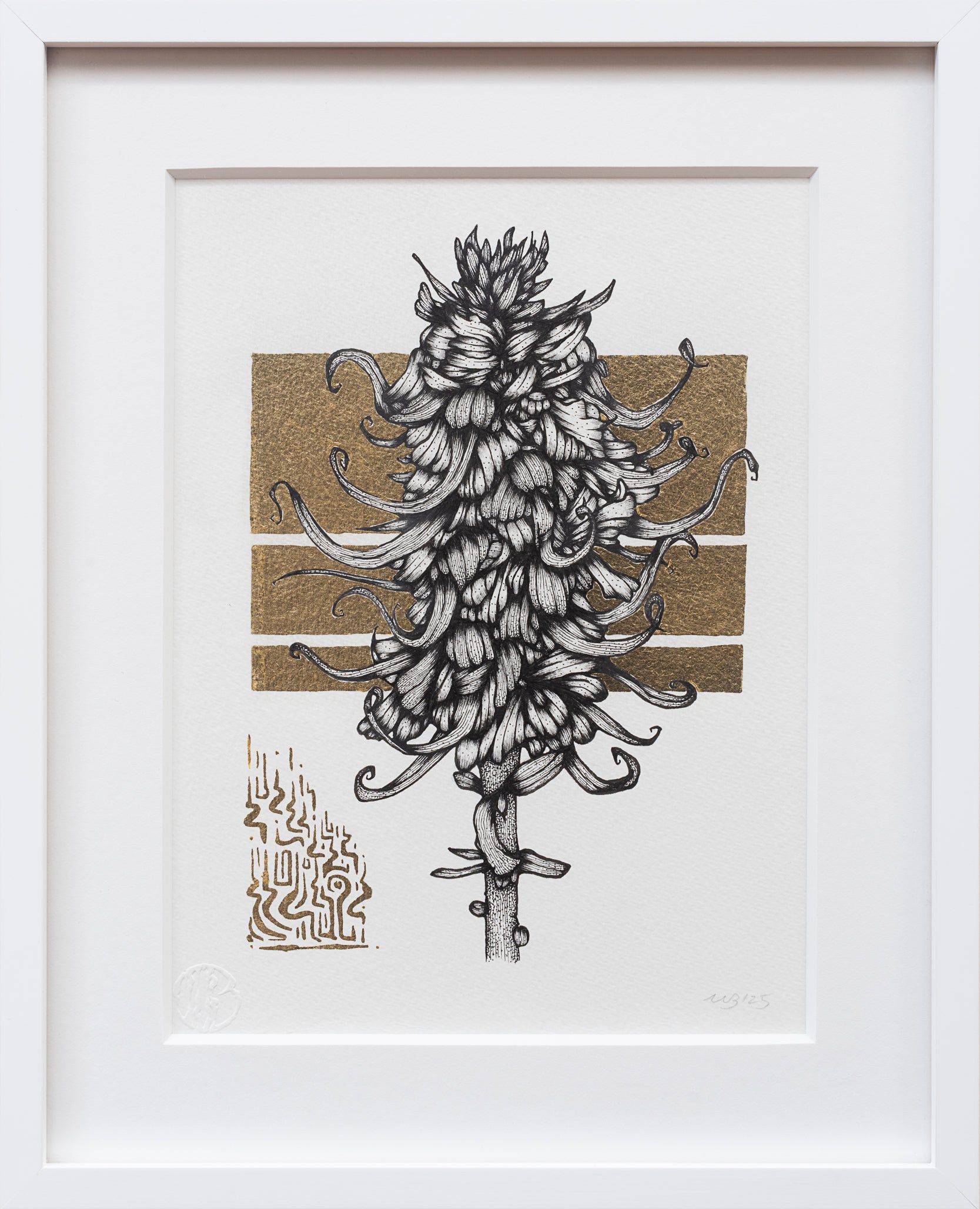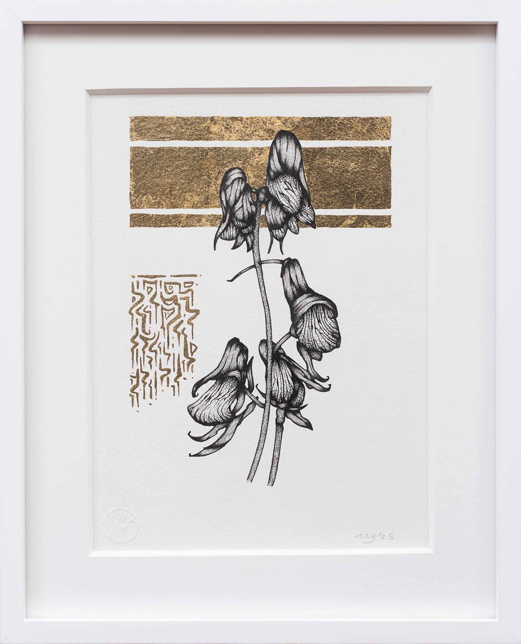 Ink & Gold Leaf on Watercolor Paper, 2025